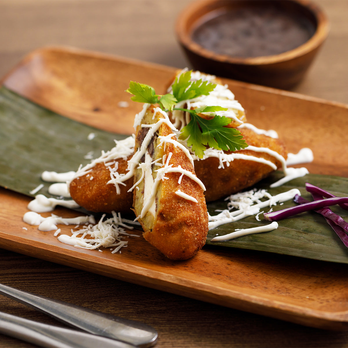 Molotes de Plátano Macho rellenos de Queso y Frijoles